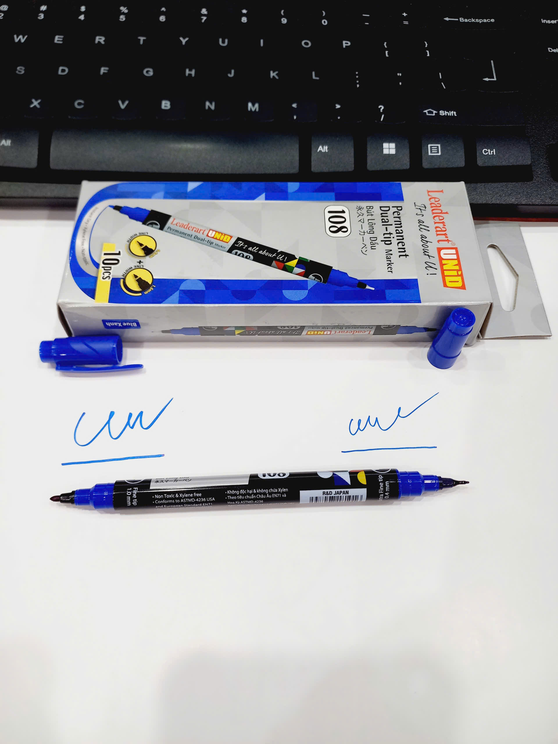 Bút lông dầu hai đầu Leaderart LA108(Thương hiệu Nhật) Bút dạ kính hai đầu cỡ nhỏ LA 108 - Hộp 10 chiếc