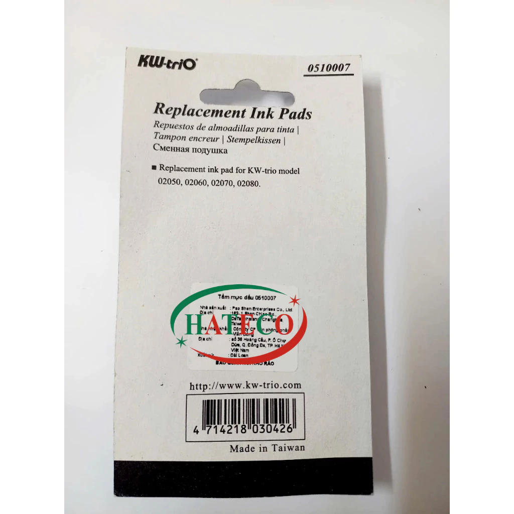 - Ngoài ra đệm mực dùng cho máy đóng số KW-TRIO 0510007 còn thích hợp dùng cho dấu nhảy các hãng khác như Deli, Max, Stacom, với các mã tương ứng 7506, 7507, 7508, N607...