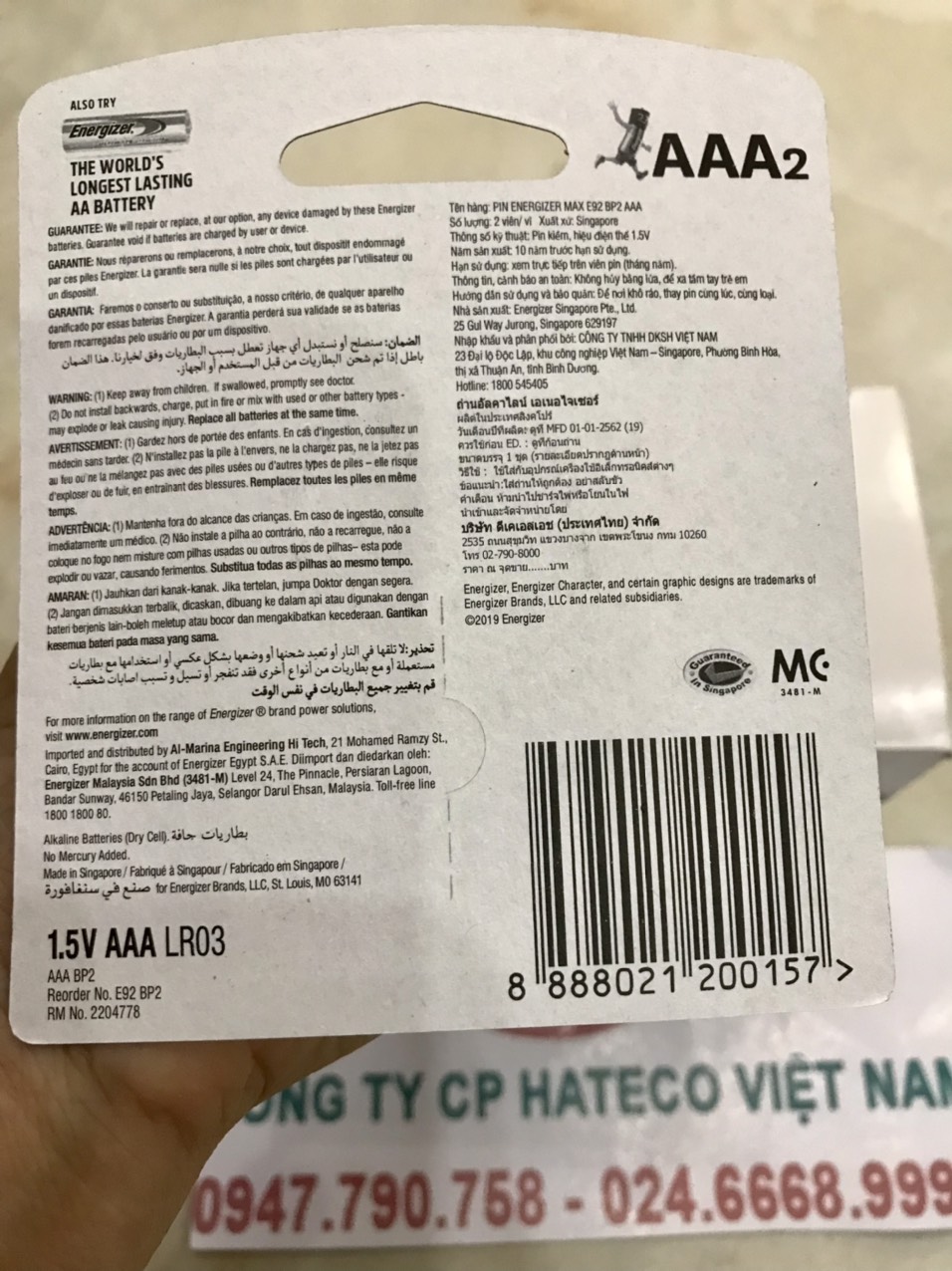 - Energizer là nhà sản xuất tiên phong trong các nhà sản xuất Pin 3A - AAA kiềm không thủy ngân (Zero Mercury AAA Alkaline Battery) an toàn cho môi trường.